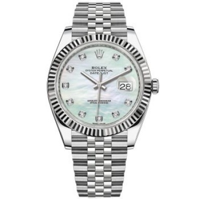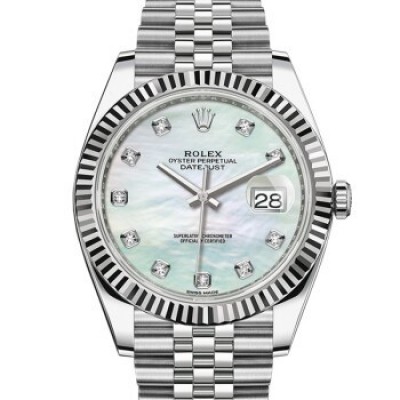 瑞士劳力士ROLEX手表日志型41系列自动机械男表M126334- 0020白珍珠带钻五格链